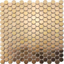 小さい金の円形の金属ミラーのヘアライン モザイクは居間の壁のホテルのバーを飾る