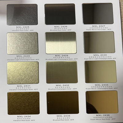 PVD 色のステンレス スチール シート は 幅広く 色 が 揃っ て い ます.この プロセス に よっ て,表面 に チタン と 窒素 ベースの 陶器 コーティング が 施さ れ て い ます.工法 や 合金 方法 の 違い が 広く 色 を 得る ため に 用い られ ます.