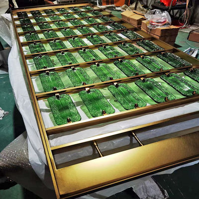 円形 金色 ステンレス スチール スクリーン パーティション モルー ガラス