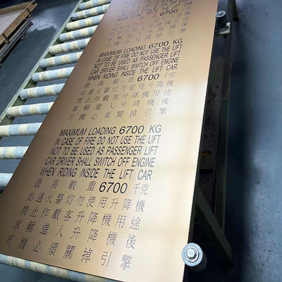 刻印されたパターンは,指定された領域に保護性酸耐性フィルムを選択的に塗り,保護されていない領域に酸で刻印することで作成されます.色を鈍い銀灰色に変える表面を磨き,スーパーミラー,または他の仕上げと対照化して数千の変形を作成することができます.飾り付けに使われていたエレベーターのドアや壁パネルや コッピングやトリミングなどです